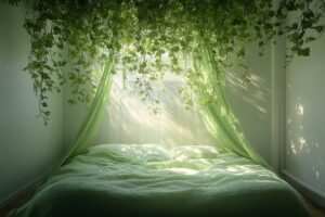 Apportez de la fraîcheur à votre décoration avec un ciel de lit vert