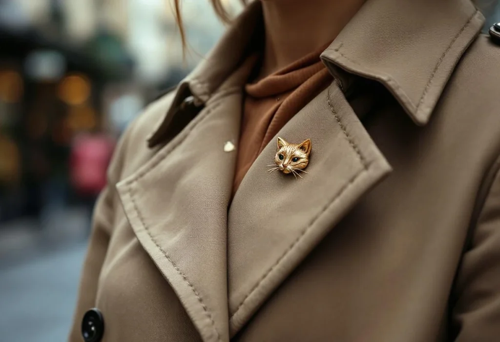 Look parisien : sublimer un trench ou un blazer avec une broche chat dorée